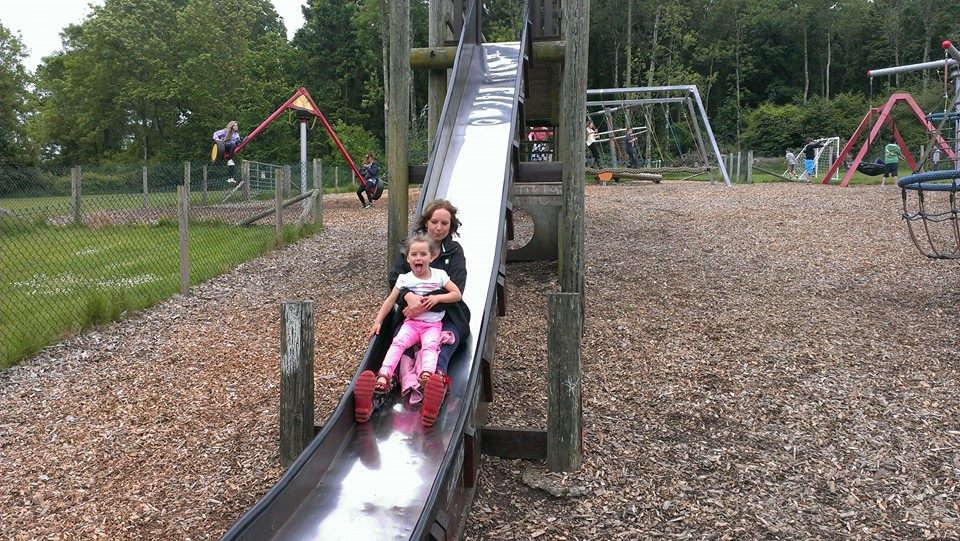 There used to be a very tall and, let’s be honest, quite rickety slide at the campsite. This was the focus of much of the park fun. In the pictures below you can see Sarah, safely holding onto her daughter as she went down the slide, and also Sean kind-of holding Abbie. However, when Leo was old enough to go down at around two, he was a little scared to go and so Sean decided to help him. He did this by taking him up the steps and then holding him dangling at the top, before (much to my horror!) letting go and allowing him to whoosh down on his own! Needless to say he didn’t enjoy it! We still talk about this and wonder if it’s why Leo is so fearful of slides and often concerned about safety.